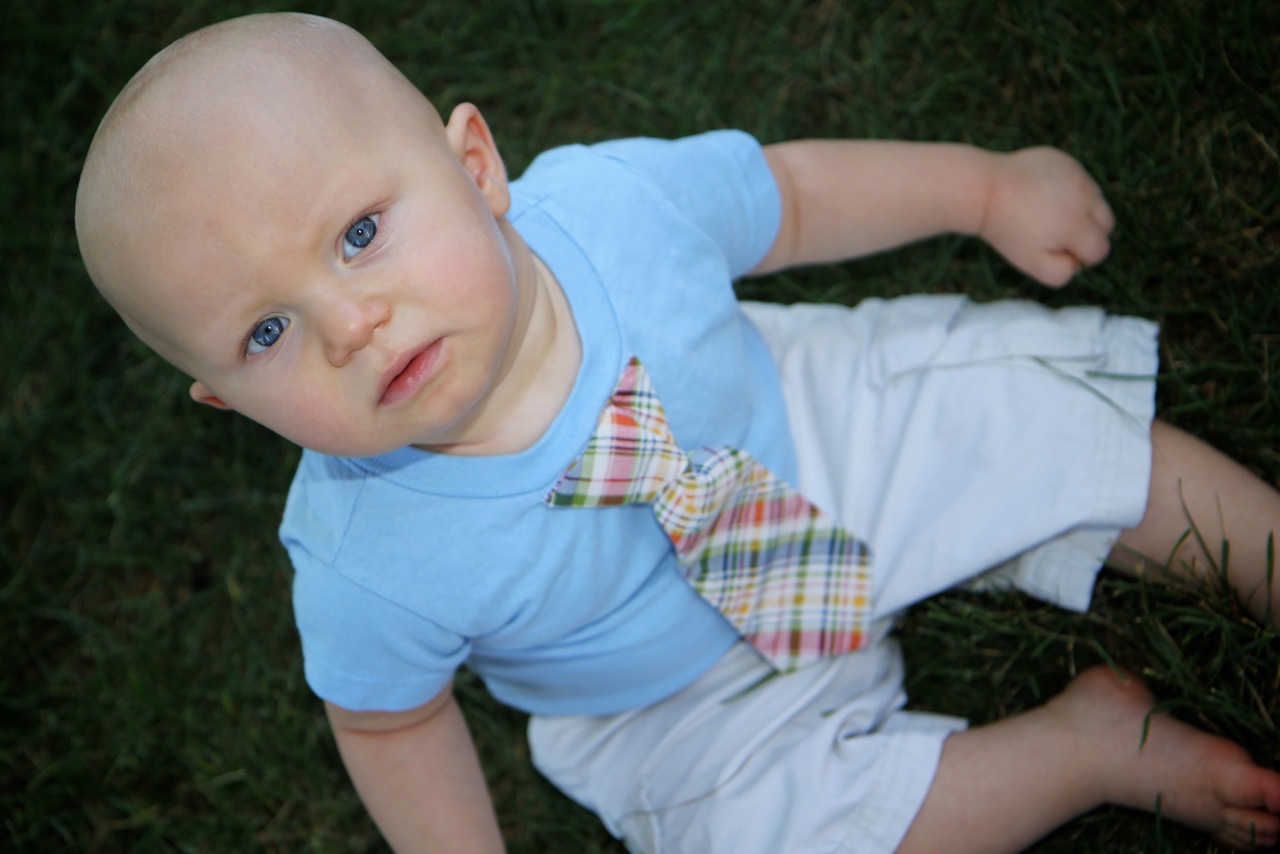 arms. We have to watch him closely - very busy boy! He did have his first trip to the ER (which was probably harder on mom and dad than him). He was treated for bronchopeneumonia, but made a quick recovery and has been back to his normal self for the last couple of weeks. He did very well over Labor Day in the hotel in Bismarck with mommy and daddy and their college friends, and he loved swimming in the pool and going down the waterslide. (Yes, daddy took him down the big waterslide. Mommy nearly had a heart attack.) Other milestones include two bottom teeth, climbing stairs, and
